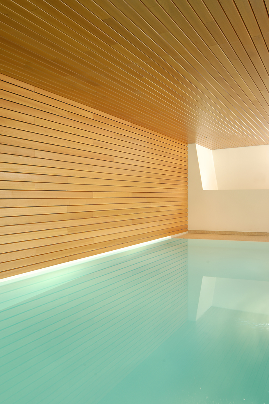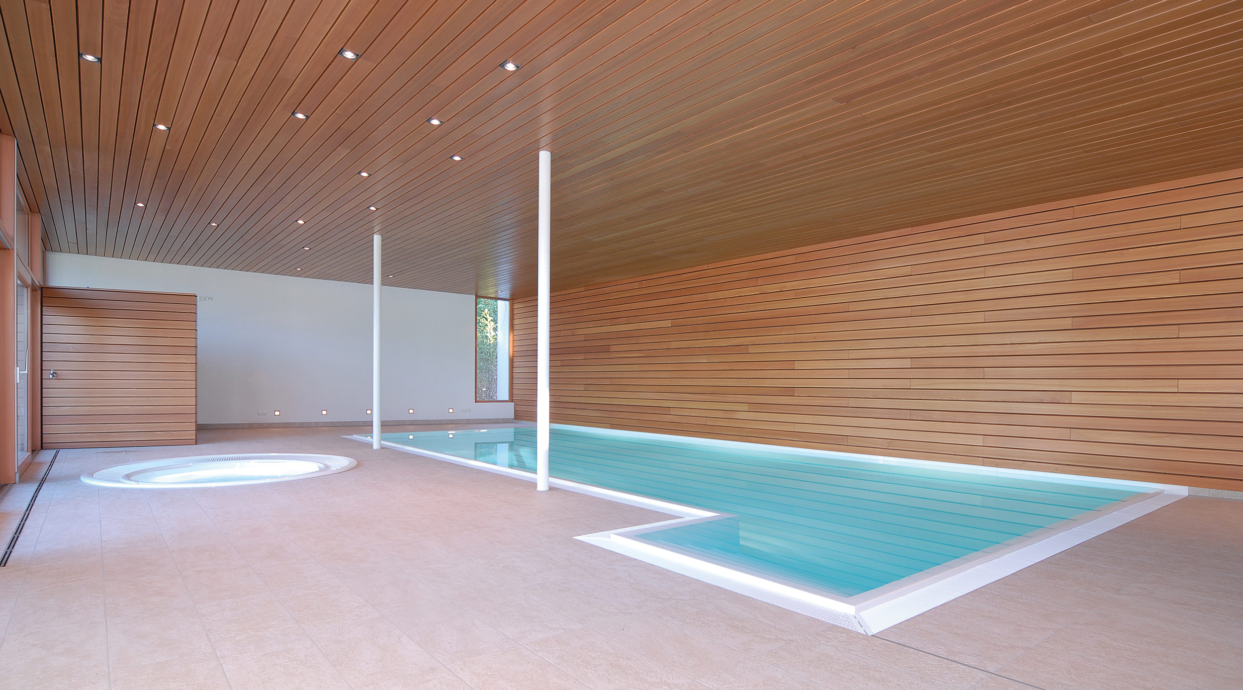 Die Schwimmhalle im Siegerland entstand auf einem sehr anspruchsvollen Hanggrundstück als Anbau an eine bestehende Villa.