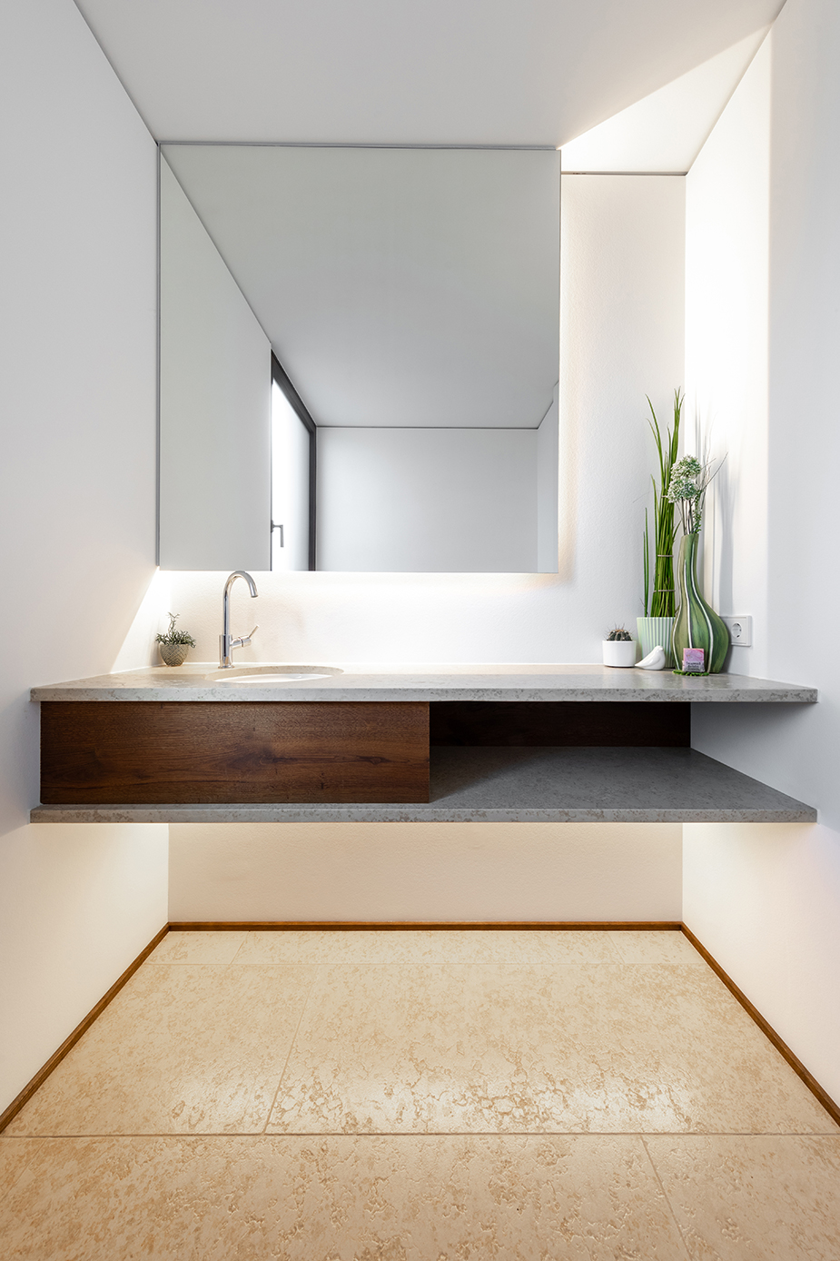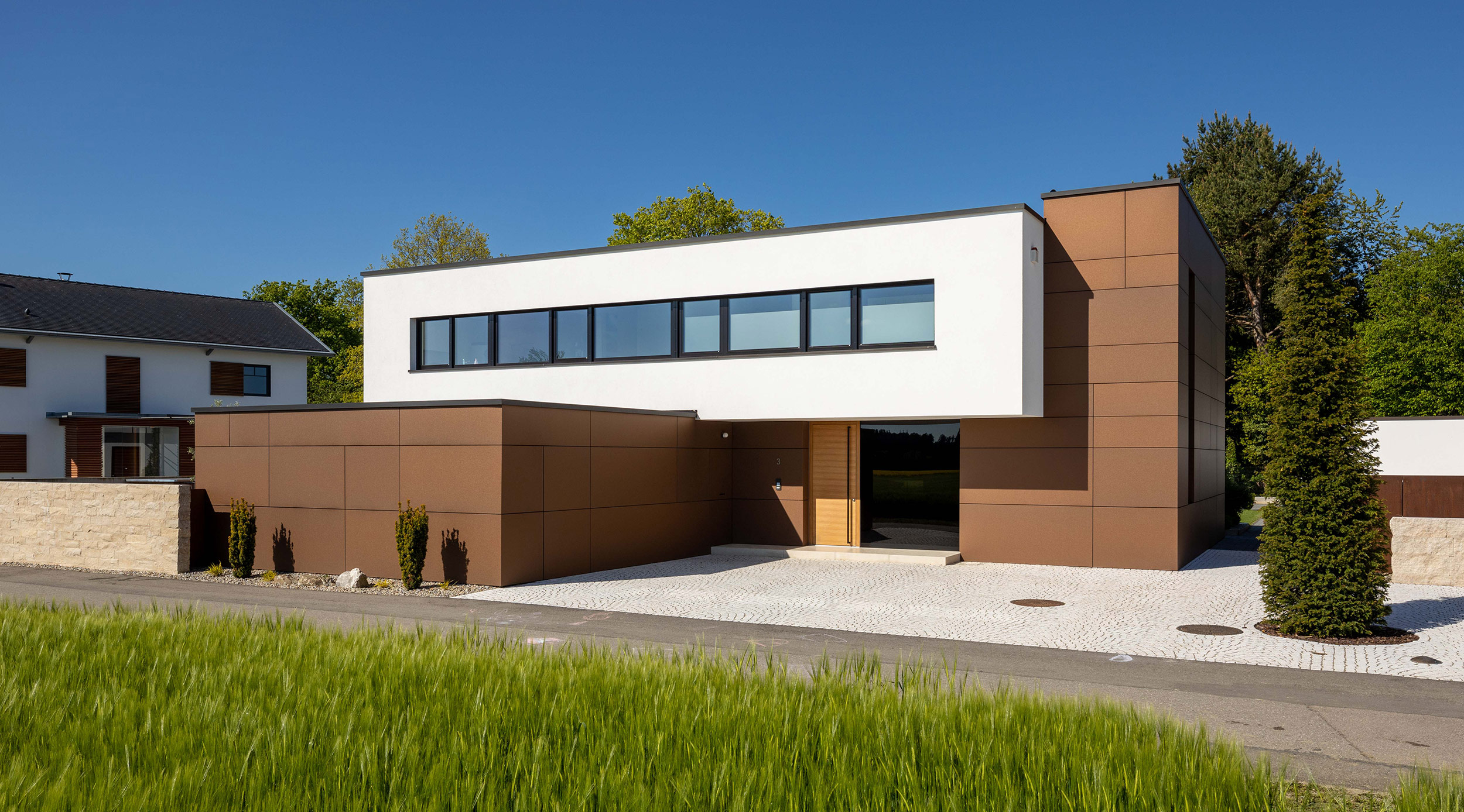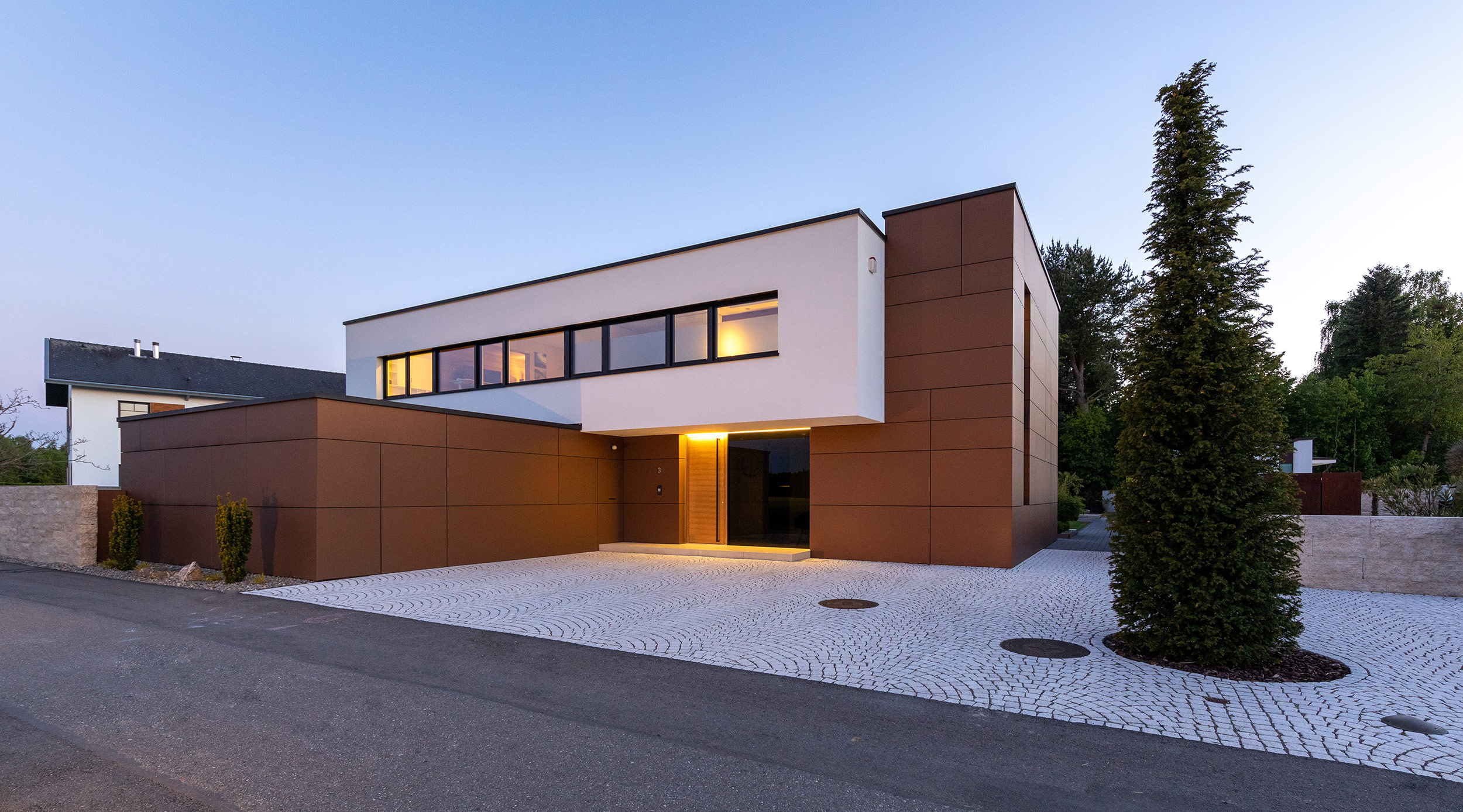 Aus Rücksicht auf die Nachbarn bleiben die nah an die Grenzen gerückten Stirnseiten weitgehend fensterlos.